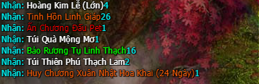 - Túi Quà Đan Quế Phiêu Hương: khi mở sẽ nhận các bảo vật quý